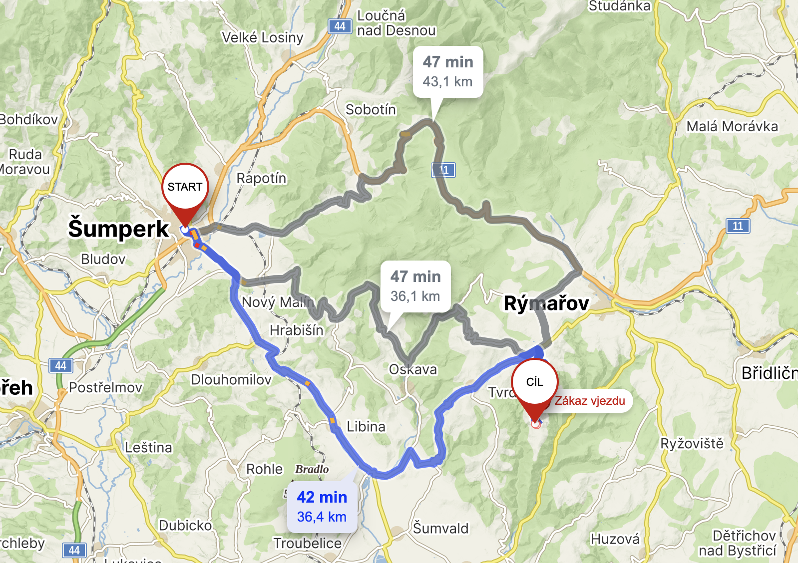 by car 36 km (hotel-Rešov village), 3 km (on foot to the waterfalls, there and back)