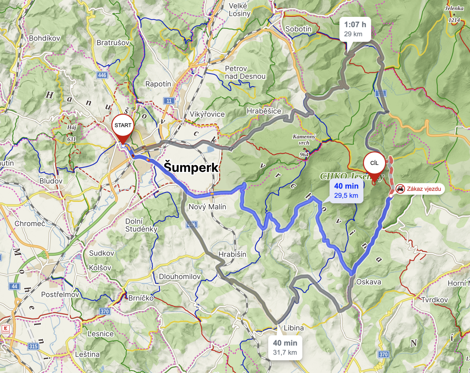 autem z hotelu k motorestu Skřítek 22 km, Skřítek - Rabštejn 8 km